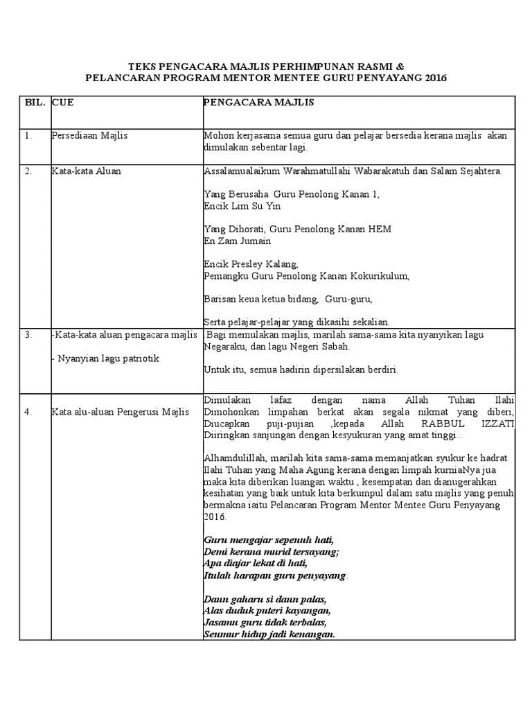 Teks Pengacara Majlis Pelancaran Guru Penyayang