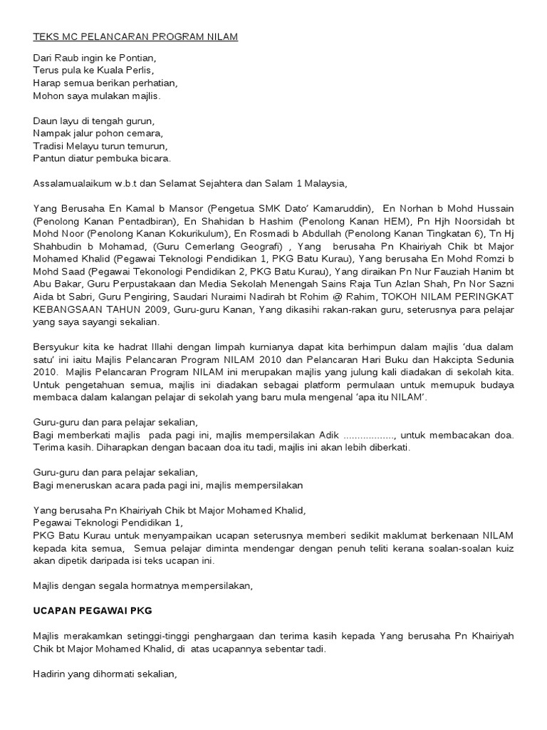 Teks Pengacara Majlis Pelancaran Program Nilam 2013 Pdf