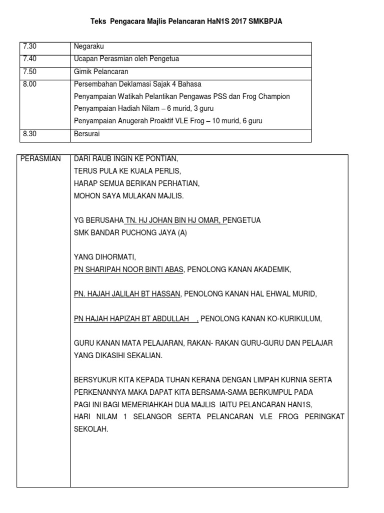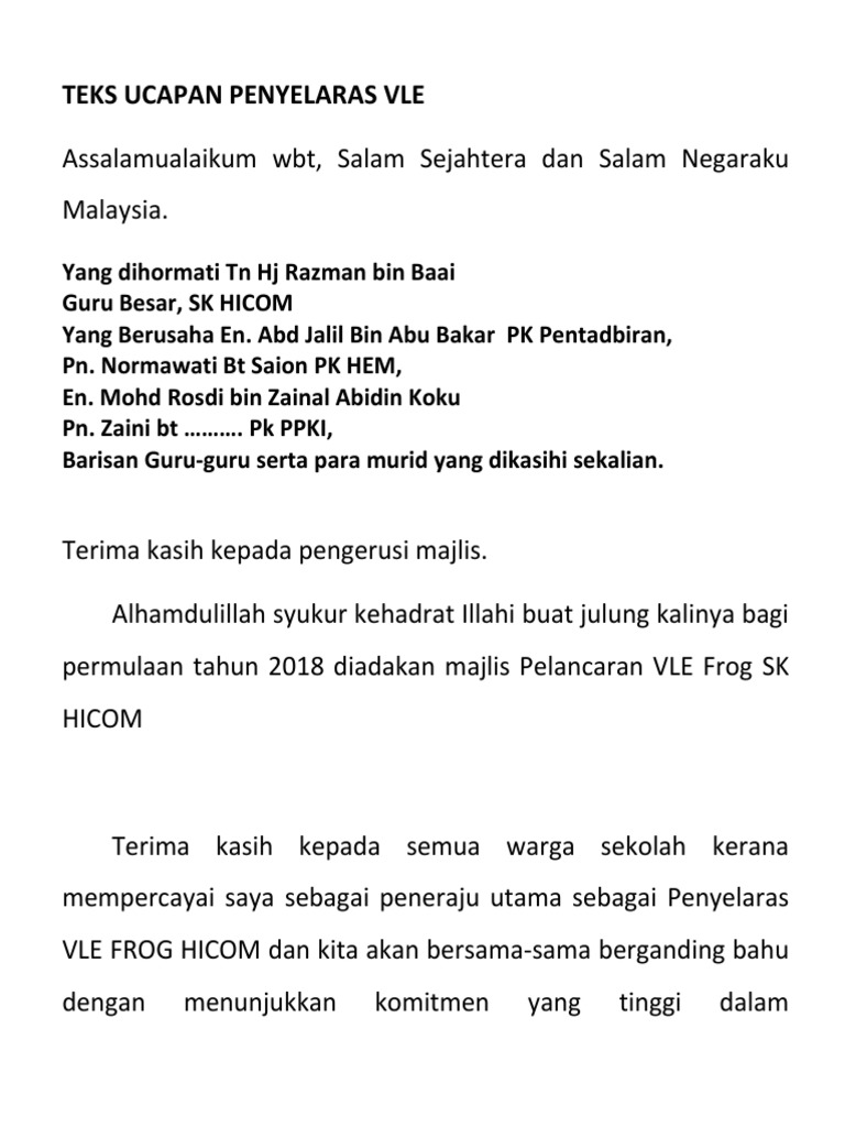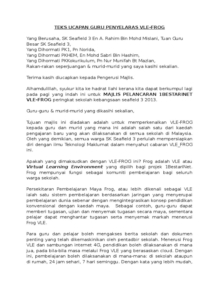 Teks Ucapan Perasmi Minggu Bahasa Smk Nilam Dan Vle Frog
